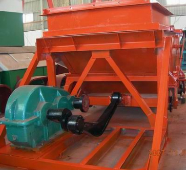K型往復式給煤機由機架、底板(給料槽)、傳動平臺、漏頭號、閘門、托輥組成,當電機開動后經彈性聯軸器、減速機、曲柄連桿機構拖動傾斜5度的底板在輥上作直線往復運動,料均勻地卸到其它設備上。本機可根據需要設有帶漏斗、不帶漏斗兩種形式。本機可根據需要設有帶漏斗、不帶漏斗兩種形式。