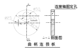 由上圖可知,連接軸與連接板之間的固定主要是依靠焊接,采用J422中碳鋼焊條,焊縫為10毫米,基本上可以達到母體(軸)的強度,另一端通過軸承與曲軸固定連接,而給煤機在實際運行過程中,一般有兩種比較大的受力狀態:1、煤倉的存煤較多;2、大的砟塊直接砸在往復板上對設備造成的沖擊。由于是焊接斷面,雖然斷面的焊接強度可以達到要求,但是其塑性和韌性均有大副下降,直接影響焊接效果而容易造成結構斷裂的主要原因有①焊接殘余應力;②焊接角變形和錯位;③應力集中等原因,所以在運行使用過程中,承受大的負荷和沖擊的能力便有所下降,容易出現曲柄連接板與連接軸開焊,造成事故。根據這種情況,我們設計將連接軸和連接板制作為一體,并對曲柄進行調質處理硬度HB200-300,既保持了原有的強度,又不降低韌性和塑性,使連接軸的抗沖擊能力大為增強,如下圖: